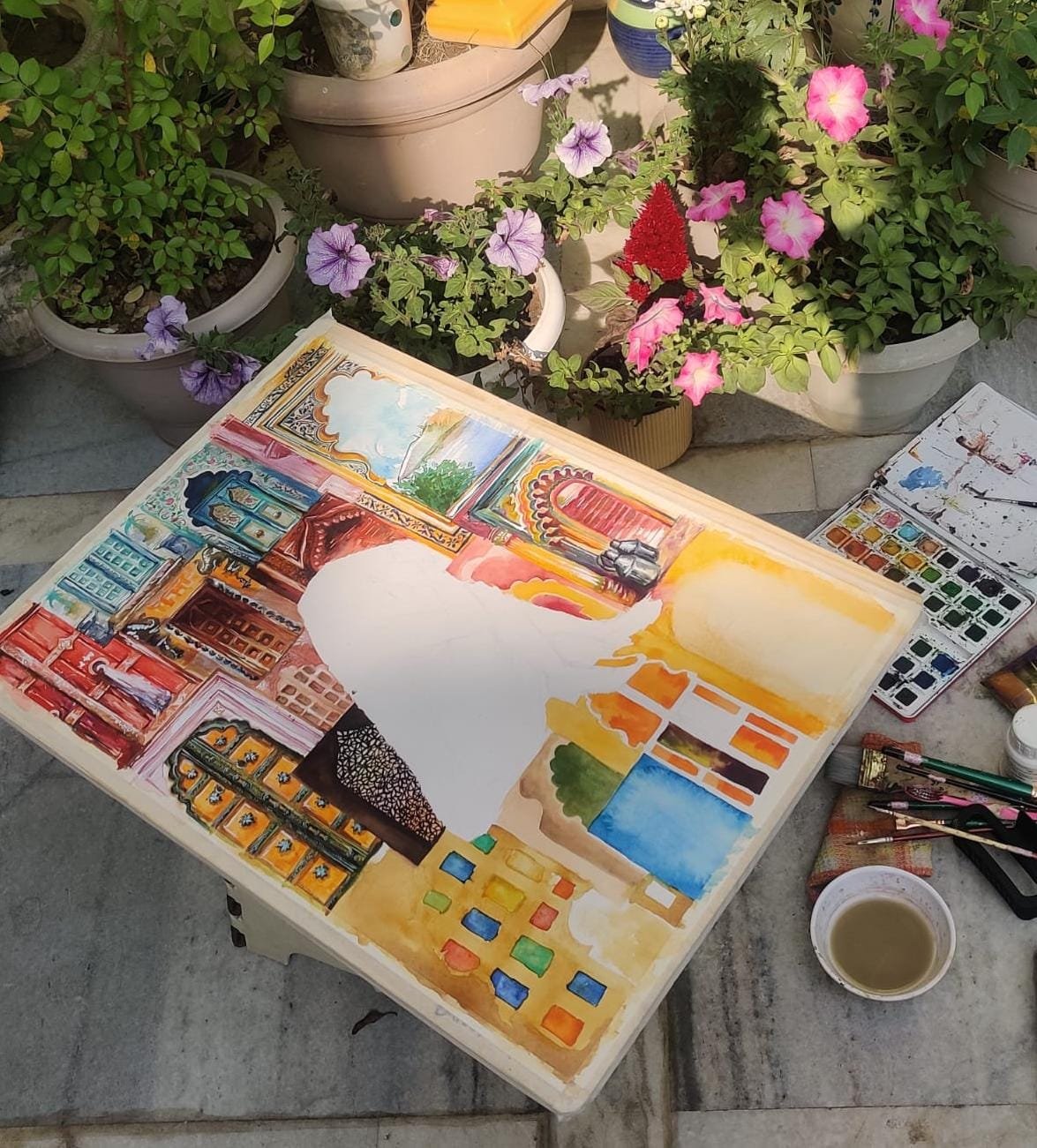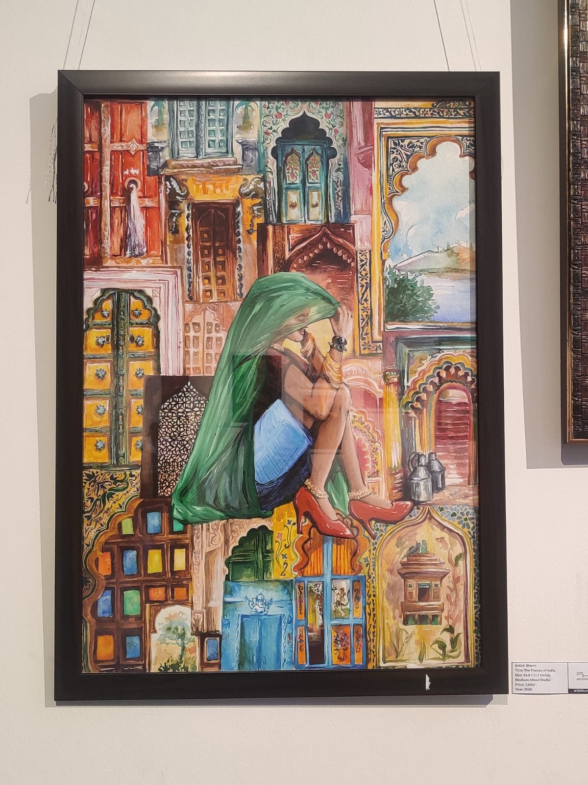 The central figure adds a social layer, where the ghunghat acts as a symbolic boundary shaping identity, while contemporary clothing redefines it. The work highlights the coexistence of tradition and modernity, positioning art as an extension of the spaces we inhabit.